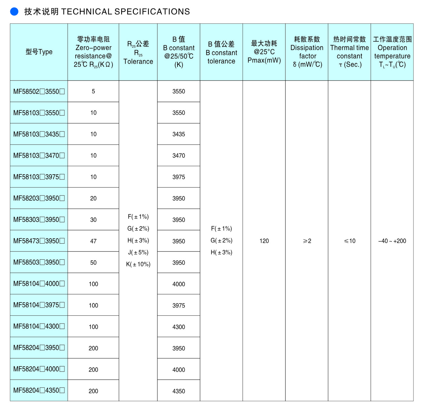 MF58系列 玻璃封裝型