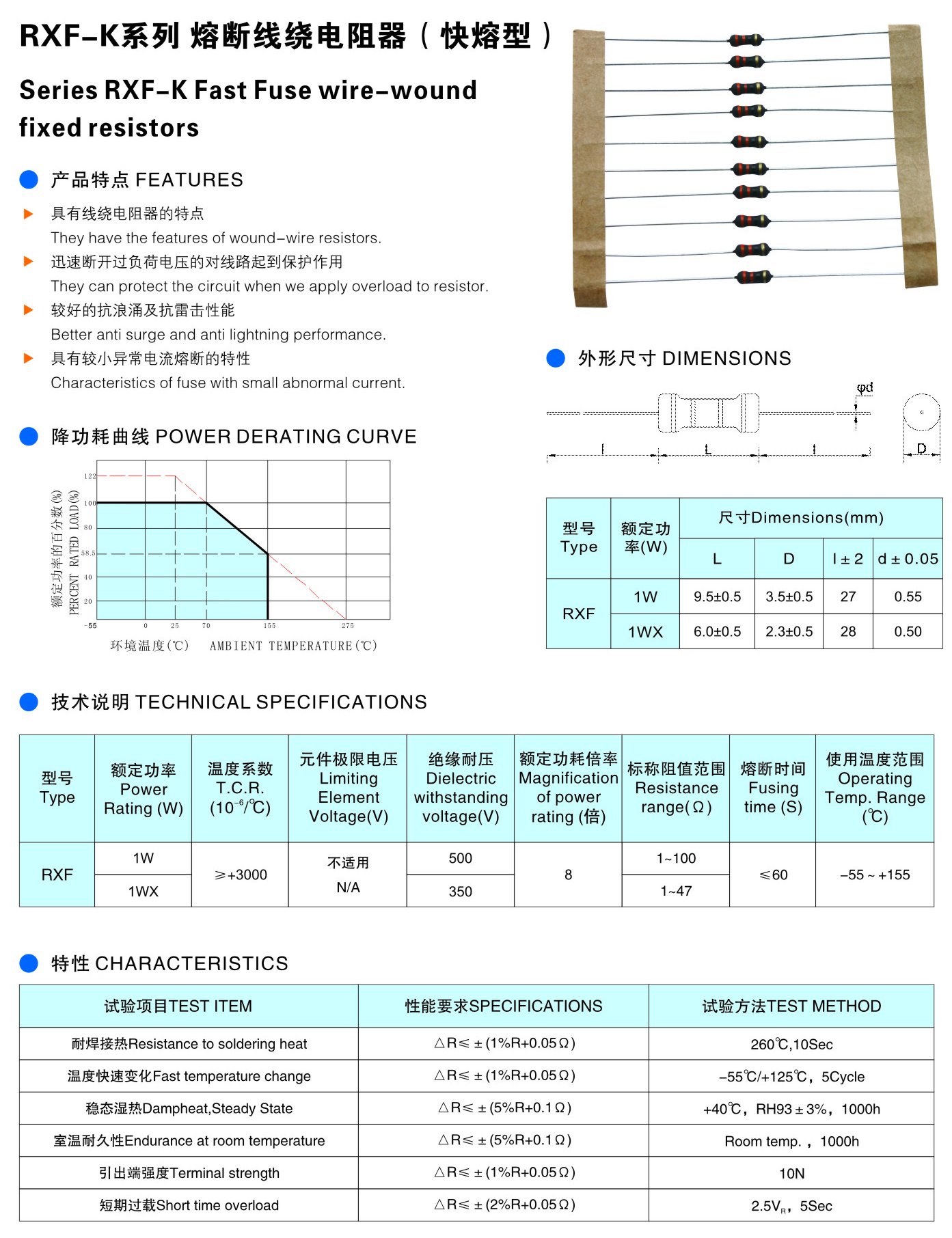 RXF-K系列 熔斷線繞電阻器(快熔型)