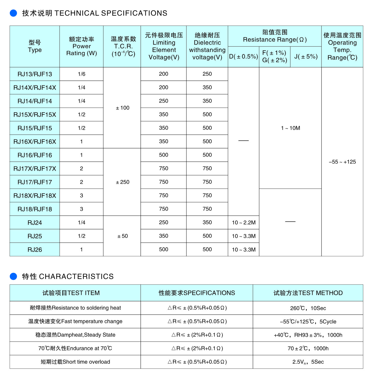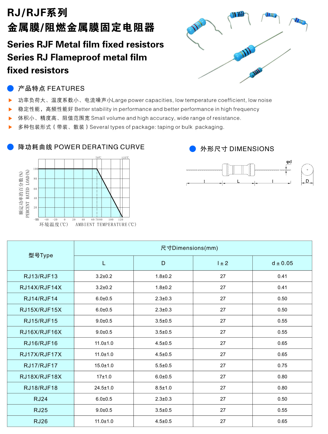 RJ/RJF系列 金屬膜/阻膜金屬膜固定電阻器