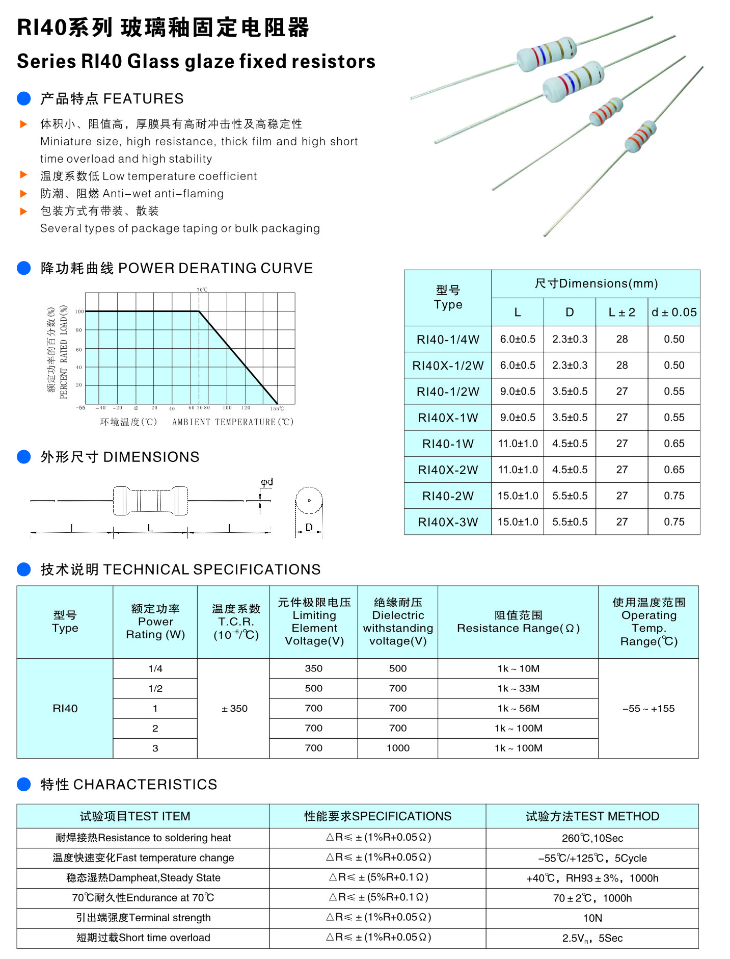 RI40系列 玻璃釉固定電阻器