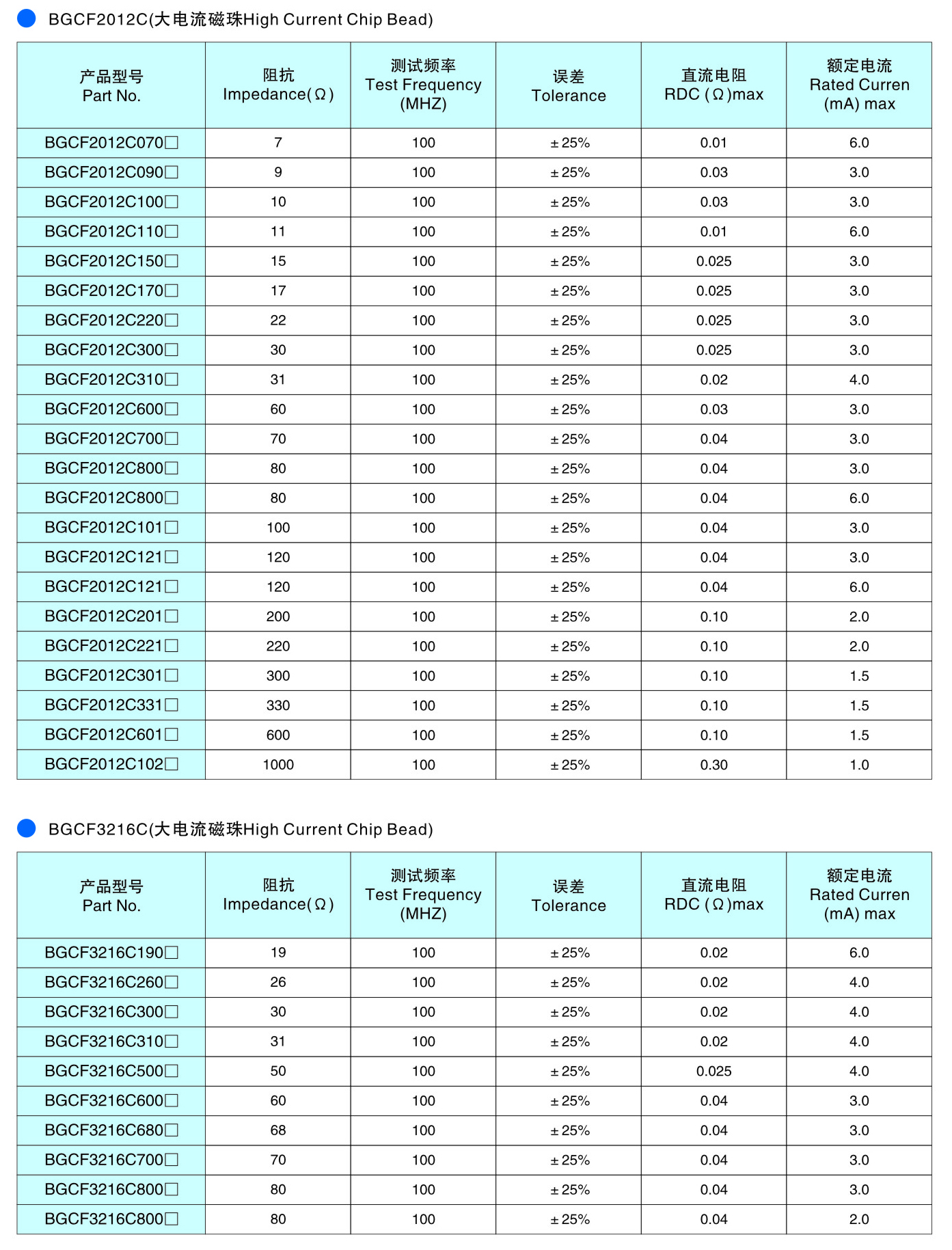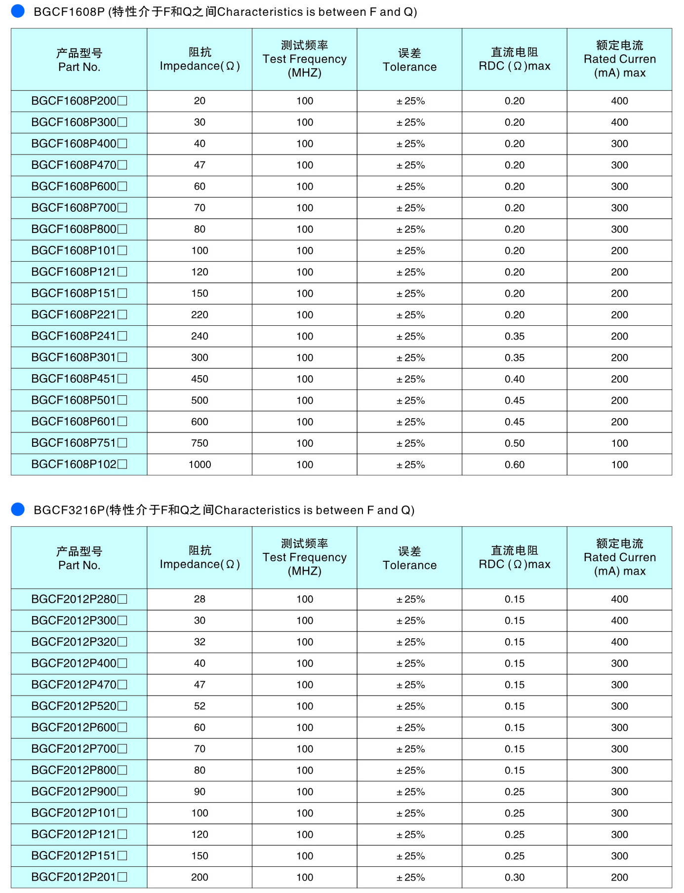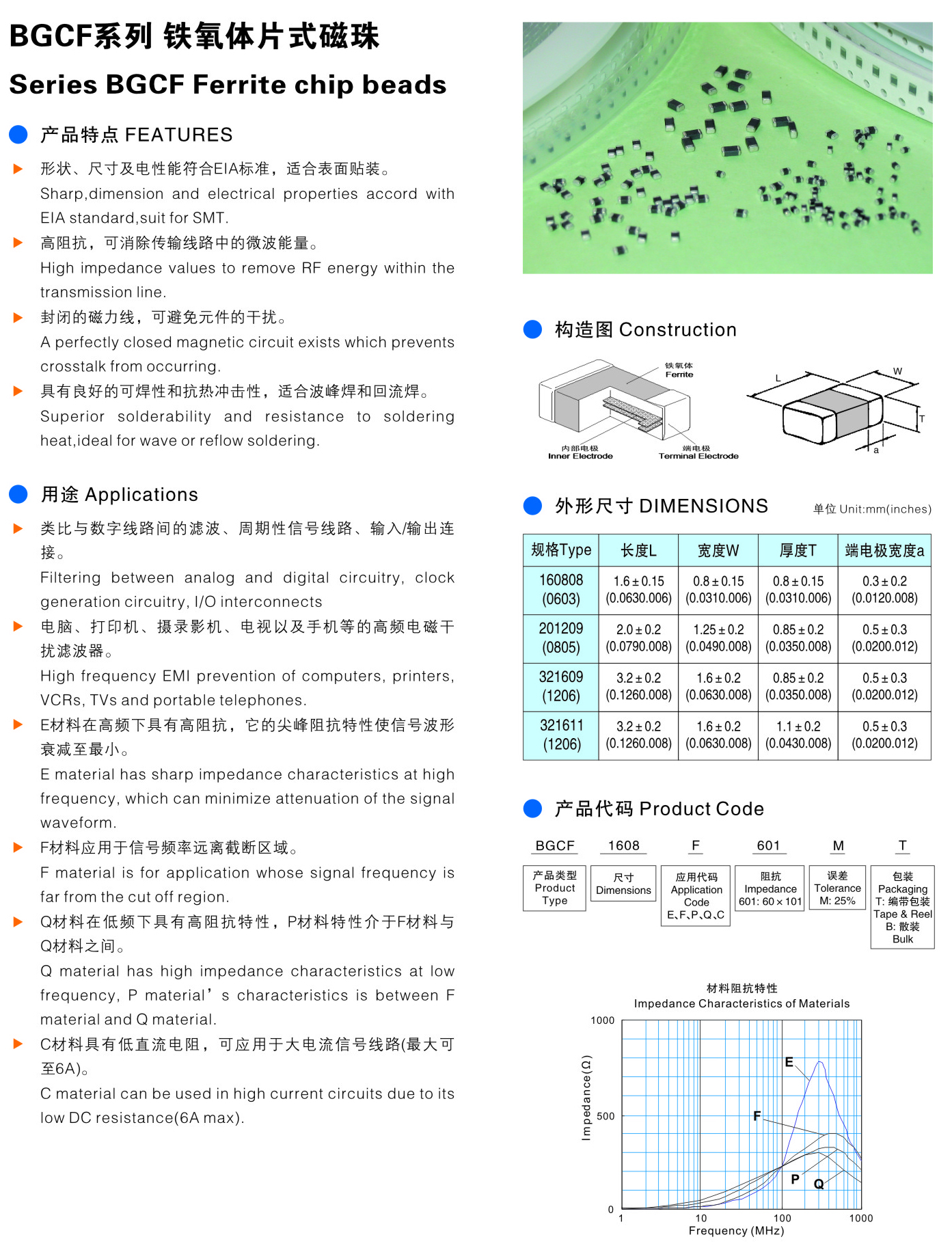 BGCF系列 鐵氧體片式磁珠