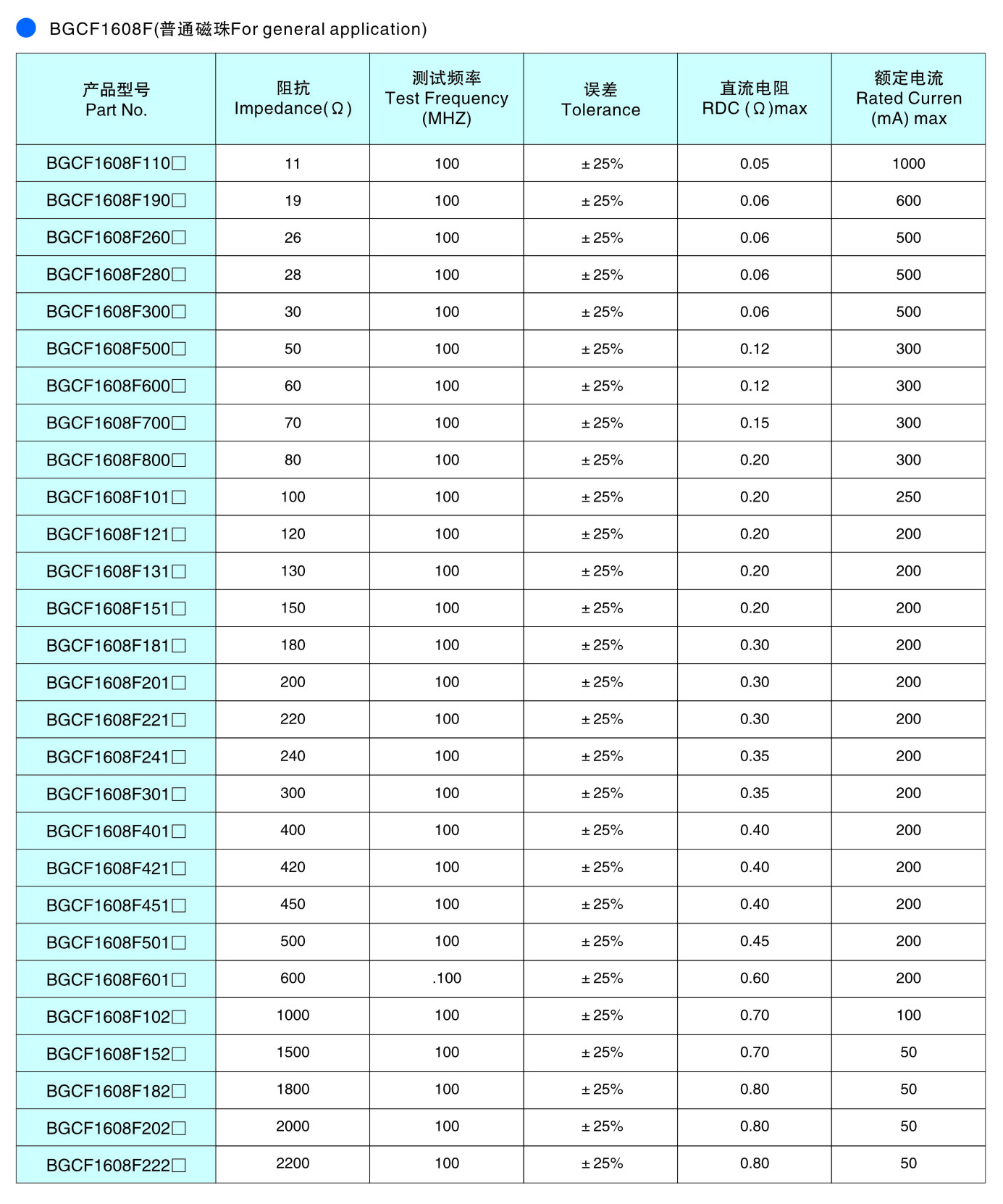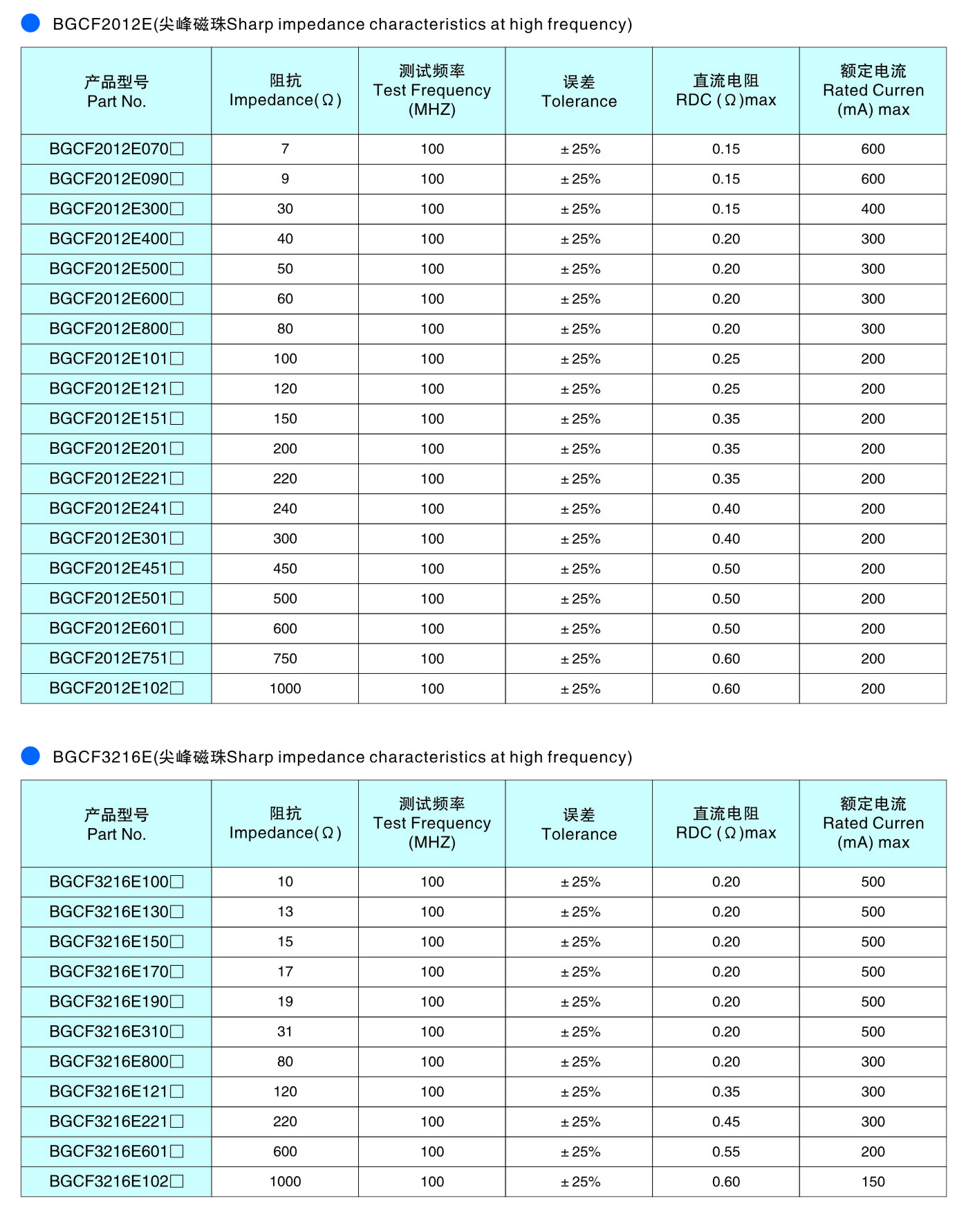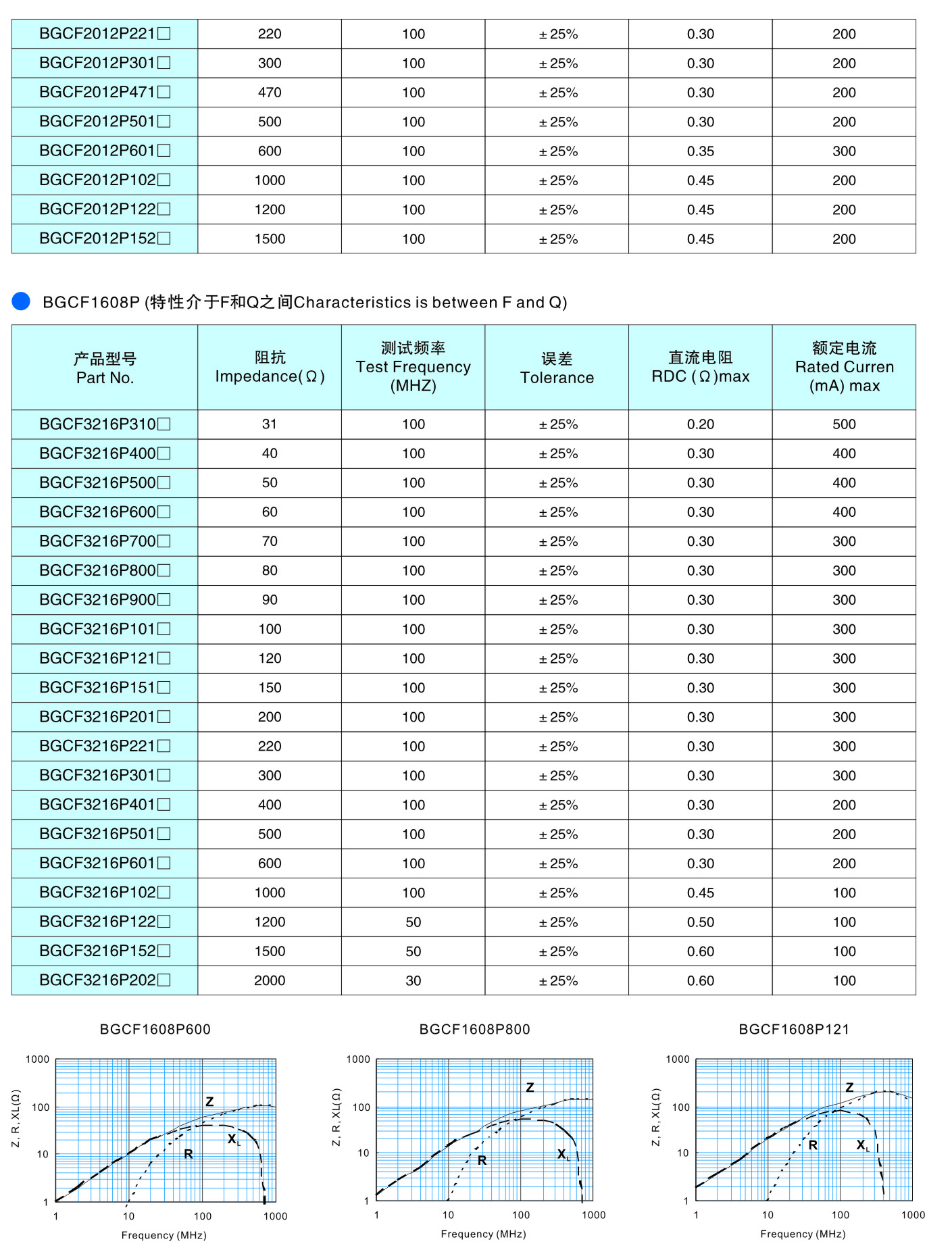 BGCF系列 鐵氧體片式磁珠